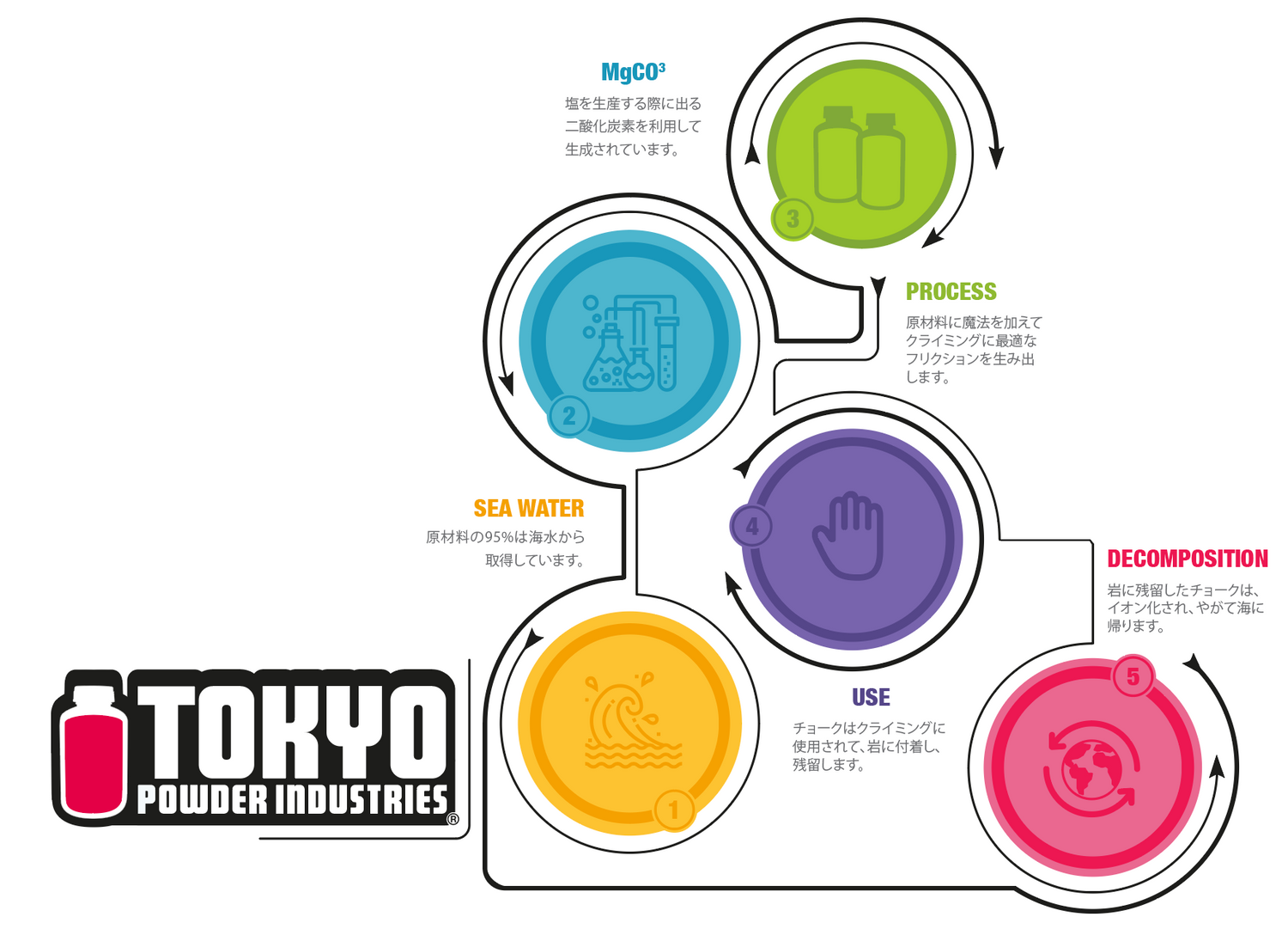水酸化マグネシウムより生成することで不純物を抑え、環境にも優しい優れた炭酸マグネシウムを使用しています。非常に手へのノリが良く、クセが少なく、且つハイレベルの持続可能性を実現しています。